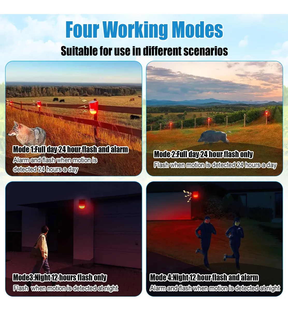 Protege tu propiedad con esta alarma solar inteligente, equipada con sensor de movimiento y luz de advertencia. Ideal para patios, granjas, entradas, galpones y zonas exteriores sin acceso directo a corriente.