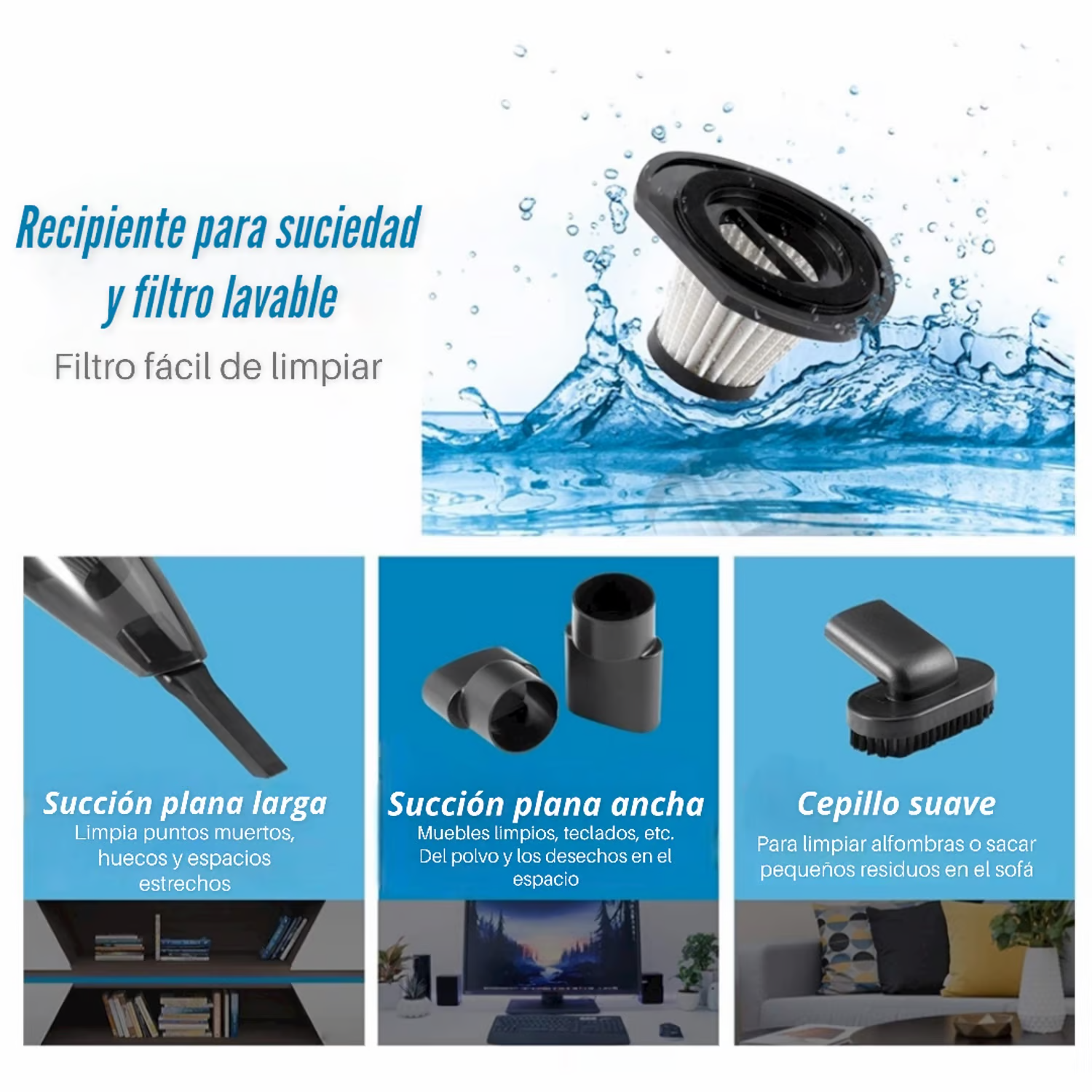 Aspiradora de Mano Inhalámbrica Recargable con 6 accesorios