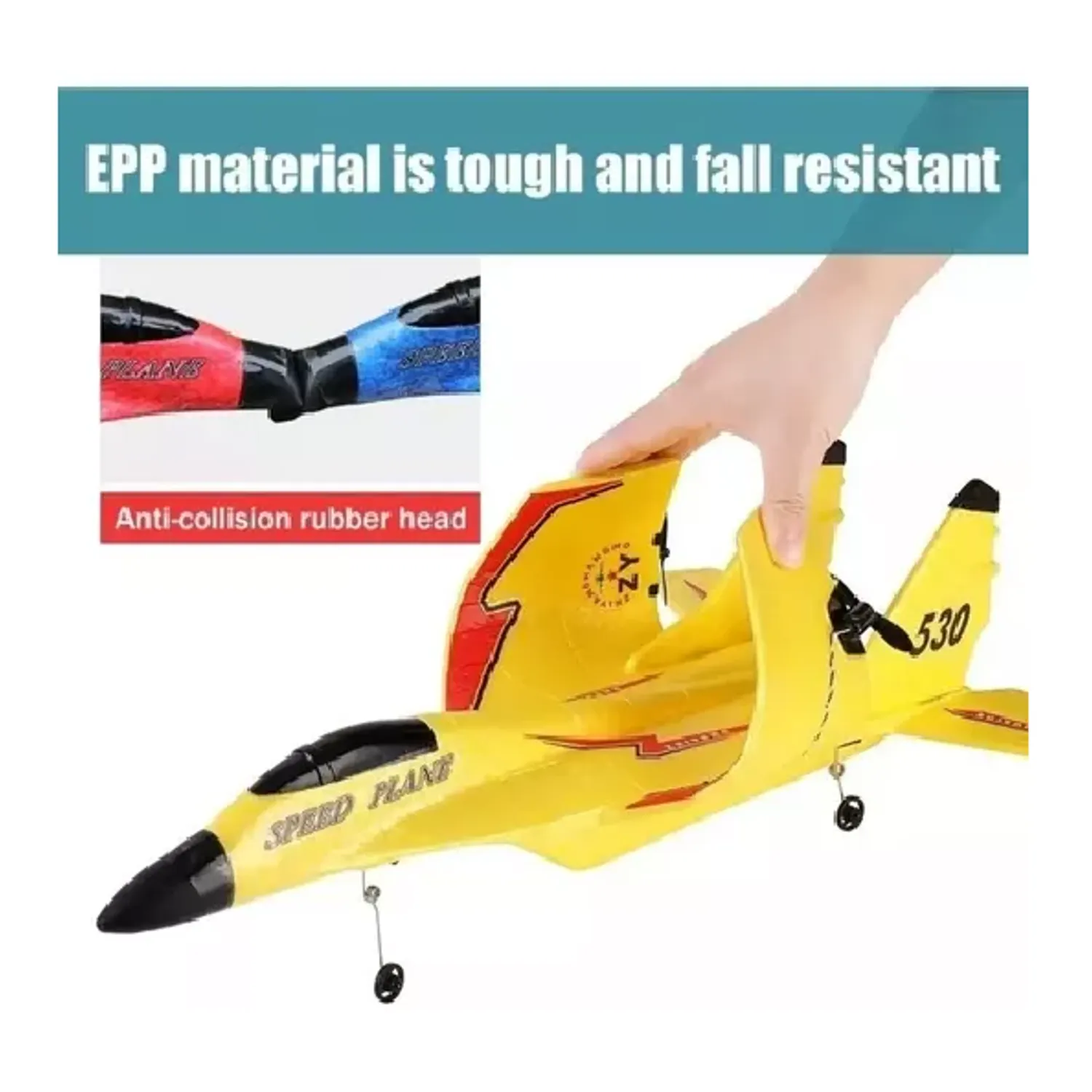 Este avión de combate a control remoto está diseñado para ofrecer una experiencia emocionante y única a los aficionados a la aviación. Fabricado con EPP de alta calidad, un material duradero y liviano, este avión es ideal para vuelos en exteriores, ya que puede resistir pequeños impactos sin dañarse. Con un motor potente y un alto par, este avión ofrece un rendimiento excepcional, permitiendo maniobras ágiles y vuelos estables. El control remoto tiene un alcance de hasta 300 metros, lo que le permite disfrutar de la acción desde una distancia considerable en un área abierta. El avión es fácil de manejar y adecuado para quienes buscan una experiencia de vuelo divertida y entretenida. Además, cuenta con una batería recargable de 3.7V 300mAh, la cual se carga fácilmente utilizando el cabezal del cargador del teléfono móvil si no se dispone de uno especial para el avión. La luz roja del cargador se apaga cuando la batería está completamente cargada, asegurando una carga segura y eficiente. El diseño del avión es moderno y realista, con un cuerpo de plástico y espuma plumavit de alta densidad que proporciona ligereza y resistencia al mismo tiempo. Con unas dimensiones de 44 cm de largo, 32 cm de ancho y 13 cm de altura, este avión es perfecto para niños y adultos que disfrutan de los juguetes a control remoto. Recuerde que no se recomienda volar en días lluviosos, ya que la humedad puede afectar el funcionamiento del avión. ¡Este avión de combate a control remoto es el regalo ideal para quienes buscan aventura y diversión en el aire!