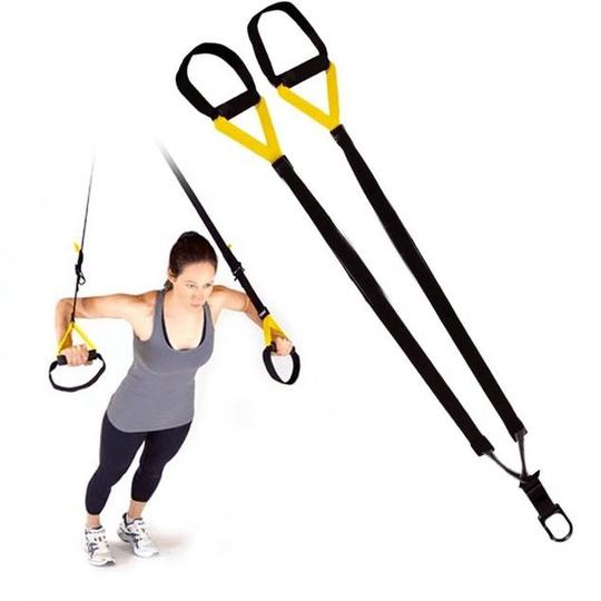 Kit de bandas de suspensión para ejercicios El TRX es un tipo de entrenamiento en el que los ejercicios se realizan en suspensión, mientras las manos o pies se encuentran colgados de estas bandas, el lado contrario del cuerpo se encuentra anclado en alguna superficie. Es ideal cuando no se cuenta con equipos tradicionales ni grandes espacios. Son fáciles de trasladar, pues son livianas y no ocupan mucho espacio, lo que es aún más fácil con el bolso de almacenamiento y transporte incluido, perfecto para aquellos que viajan y desean mantenerse en forma. Ejercitar con bandas no sólo ejercita la musculatura y la fuerza, sino que también la coordinación, la movilidad y la flexibilidad, además de quemar calorías y ayudar a controlar el peso. También es efectivo para la recuperación y la disminución del riesgo de lesiones. Son ideales para entrenamientos funcionales, crossfit, entrenamientos fitness, de fuerza o como acondicionamiento general, ya que activan casi la totalidad del cuerpo. Confeccionado en cinta nylon 3,8 cm de alta resistencia con costuras de seguridad. Soporte para pies metálico acolchado. Resistencia de presión 350 kg. Mosquetón con diente de seguridad. Resistencia de presión 350 kg.(NO INCLUYE GANCHO DE SUSPENSIÓN)Dispone de un punto de anclaje por un extremo y empuñaduras y soportes para pies por el otro .El entrenamiento en suspensión es un sistema donde aprovechando el peso de nuestro propio cuerpo conseguimos ejercitar de manera completa la musculatura corporal. Anclaje para puertas para poder realizar los ejercicios enganchando las cuerdas en cualquier puerta.