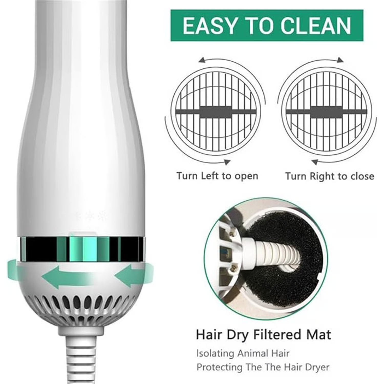 Práctico y moderno secador y cepillo para mascotas 2 en 1 para mantener el pelaje de tu mascota siempre brillante y bien peinado ya que te permite peinar y secar el pelaje al mismo tiempo.
