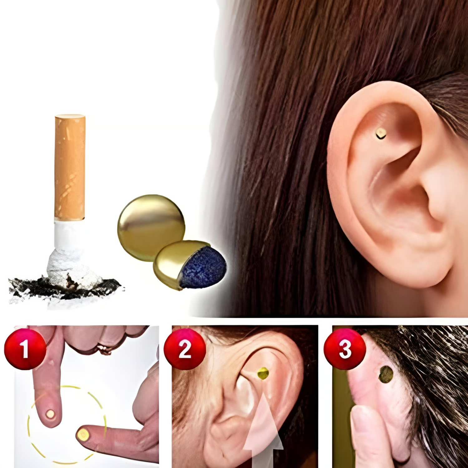 - Estimula el oído externo, activa la producción de neurotransmisores en el cerebro, para eliminar el deseo de fumar.