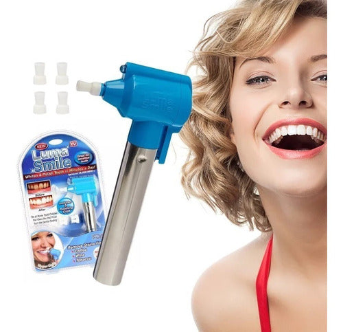 El Luma Smile llega a 14000 revoluciones por minuto, remueve manchas en los dientes ocasionadas por: café, vino, tabaco, etc.- Puedes usarlo las veces que necesites, solo debes usar la pasta dental que usas regularmente y la Luma Smile se encarga de lo demás Es el momento de una sonrisa blanca. incluye pistola, 5 tapas de goma blancas. Se aplica con pasta de dientes normal, Funciona con 2 pilas AA no incluidas.