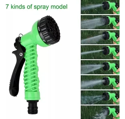 Contenido del paquete: manguera extensible, boquilla de riego con gatillo, adaptadores de conexión, instructivo de uso.