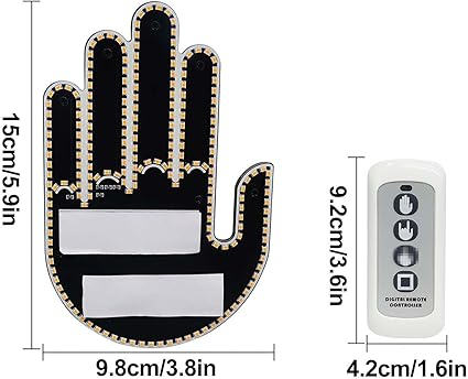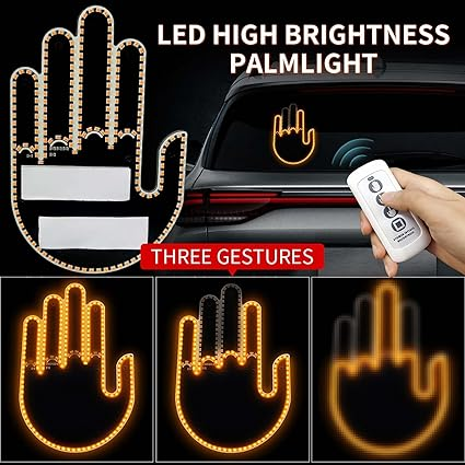 Este divertido letrero led con forma de mano está configurado con 3 gestos distintos. Es ideal para todos quienes conduciendo, quieren expresarse con ese otro auto que les toca la bocina de manera insistente o agradecer a quien te ayudó y no tienes como. Este dispositivo incluye control remoto y se puede pegar en ventanas y/o vidrio trasero de cualquier tipo de vehículo. A través de su control remoto, podrás seleccionar los tres gestos de la mano y así expresarte como quieras con tu entorno.