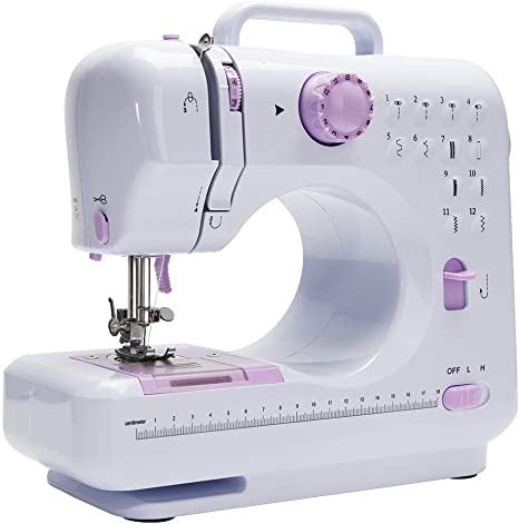 Adecuado para coser mezclilla, lienzo, seda o más telas, ideal para coser almohadas, fundas de edredón, ropa, billetera de bricolaje, costura artesanal o costura. Usando tu creatividad, cosiendo hermosos patrones a tu manera. Espaciado de aguja ajustable: le permite personalizar las puntadas. Doble hilo y doble velocidad: le ayudan a crear una puntada ordenada, recta y más firme.Está equipada con una luz LED, un pedal, un enhebrador de metal y un cortador de hilos que hacen que la costura sea más conveniente. 12 patrones de puntada: la máquina tiene una opción de 12 diferentes patrones de puntada. Para seleccionar la mirada de puntada en los diagramas numerados 1-12 en la parte delantera de la máquina de coser elija el número correspondiente en la esfera que está alineada con la flecha.La función de puntada inversa le permite reforzar el principio y el final de las costuras. Hay dos velocidades de costura para elegir: alta y baja velocidadCuenta con cortador de hilo: no necesita tijeras, lo que le permite ahorrar tiempo. Mini cajón oculto: en el costado de la máquina de coser, para el almacenamiento práctico de accesorios como hilos, bobinas, agujas. Almohadillas inferiores antideslizantes de EVA: asegúrese de que la máquina se mantenga firme en la plataforma, sea segura de usar. Con función de ojal y overlock. Fácil de coser mangas. Una regla de 18 cm de largo está impresa en la máquina de coser. Fuente de alimentación: 4 pilas AA (no incluidas) o adaptador de corriente AC / DC (incluido).