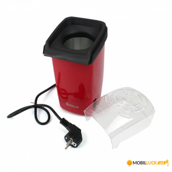 El fabricante de palomitas utiliza circulación de aire caliente en comparación con el aceite, para hacer mucho más sano, más sabroso que las palomitas de maíz es prácticamente libre de grasa. Basta con colocar los granos en el fabricante y en un par de minutos se puede ver el maíz apareciendo y que fluye a cabo una vez listo.