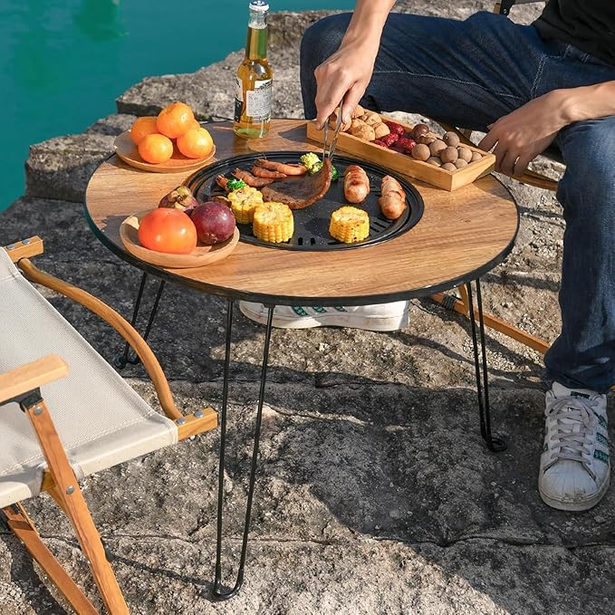 Mesa Plegable, con parrilla, para exterior, brasero, ideal para camping, terraza, patio. patas de metal, plegables.