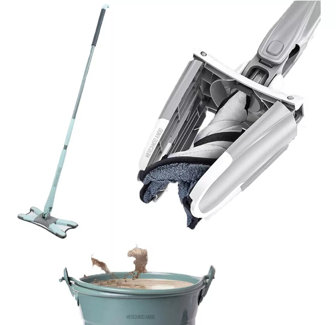 Trapeador Plano X con Sistema Auto escurridor y Mopas de Microfibra de Repuesto