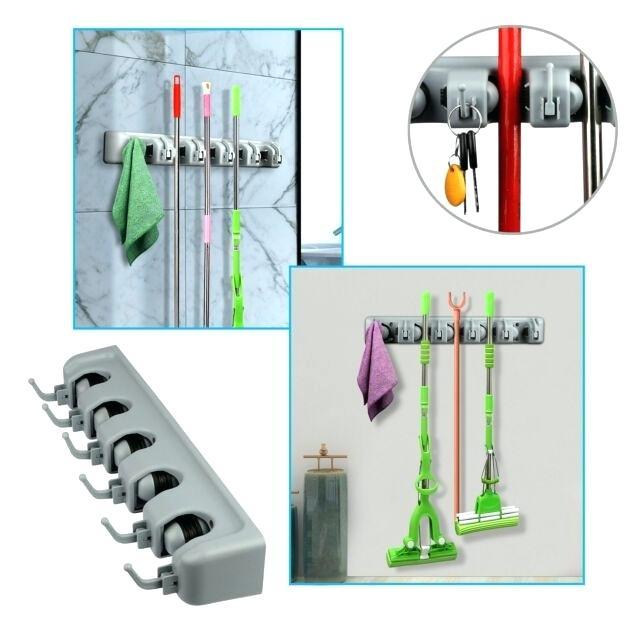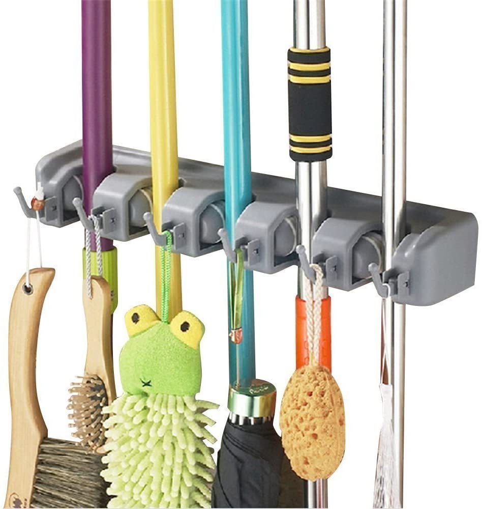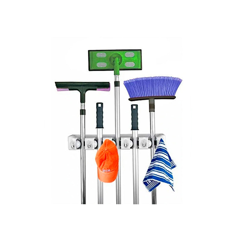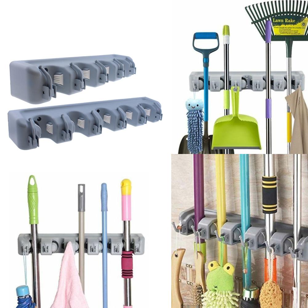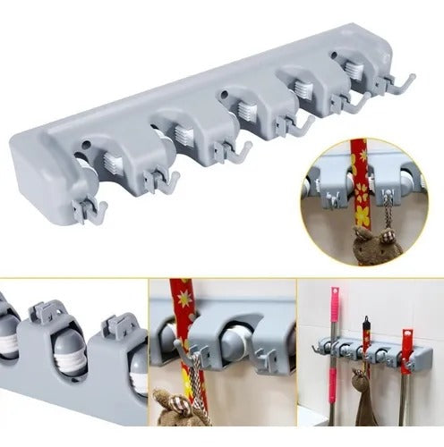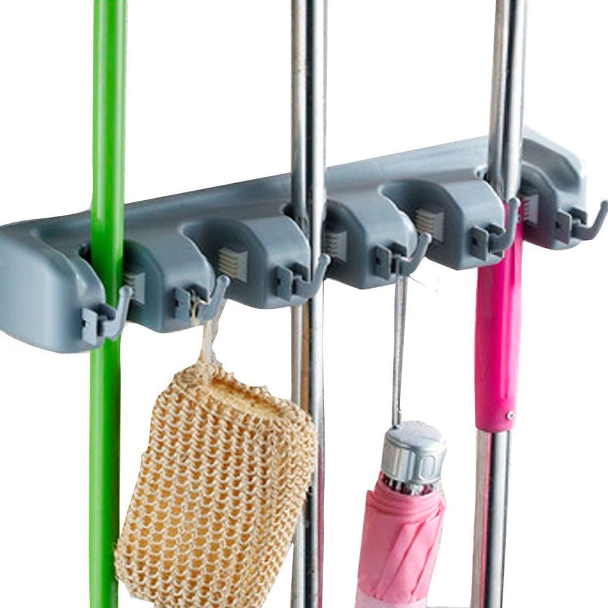 Capacidad para 5 escobas, mopas o artículos de jardín y 6 ganchos