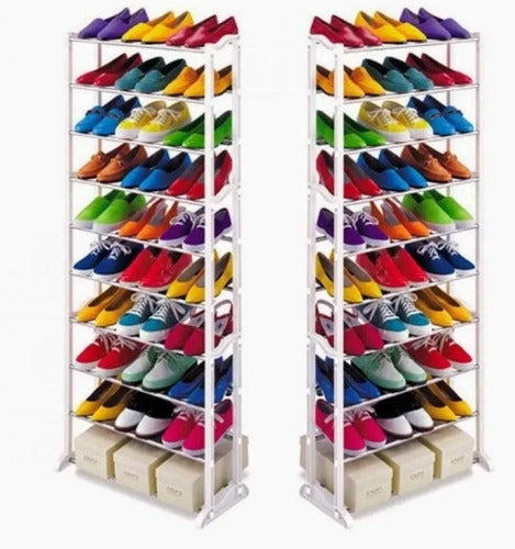 Organizador De Zapatos 30 Pares - Fácil de armar. - Piezas de plástico y metal resistentes. - Compacto para un almacenamiento sencillo. - Zapatero de 10 niveles. - Organizar Aprox. 30 pares de zapatos. Cada nivel de este organizador de zapatos puede sostener hasta 3 pares de zapatos de mujer y aproximadamente 2 pares de zapatos de hombre. Los estantes también pueden almacenar ropa doblada, gorros o lana para mantener bien organizado tu entrada, sala de estar, dormitorio, closet, bodega, etc. No requiere herramientas para ensamblar, permitiéndote construirla en cuestión de minutos. Sin ocupar demasiado espacio, sus medidas de 140x51x24 cm Lo hace perfecto para organizar cualquier pieza de tu hogar. La altura de cada estante es de 15 cm, lo que lo hace perfecto para el almacenamiento de zapatillas de deporte normales, tacos, zapatos, etc. Puede quitar niveles para adaptar el tamaño del organizador y así poder guardar botas o tacos altos.
