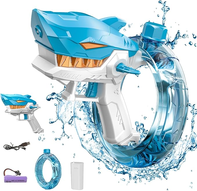 Pistola de Agua Eléctrica Diseño Tiburón 300ml Recargable USB
