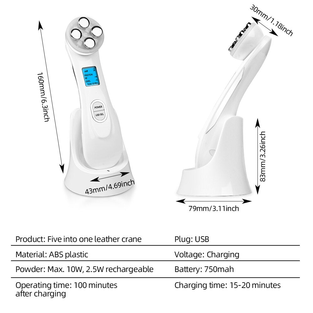 5 En 1 Radiofrecuencia Facial Mesoterapia Aparato Led Maseajeador Rf & Ems Beauty Instrument