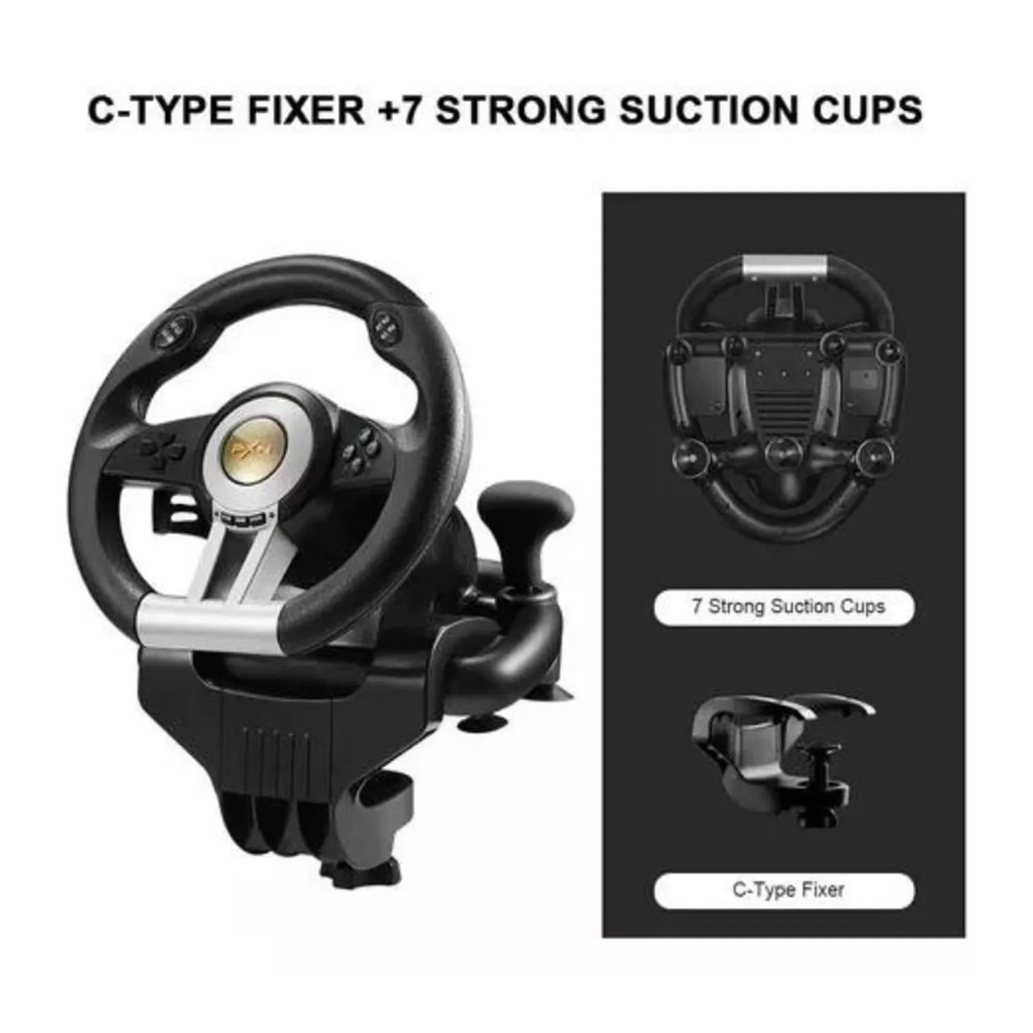 - Doble fijación: la parte inferior tiene siete ventosas para fijar, y el juego tiene un soporte de fijación en forma de C para fijar. Incluso si se agita debido a la conducción simulada, las ruedas de carreras todavía se pueden fijar firmemente sin moverse.